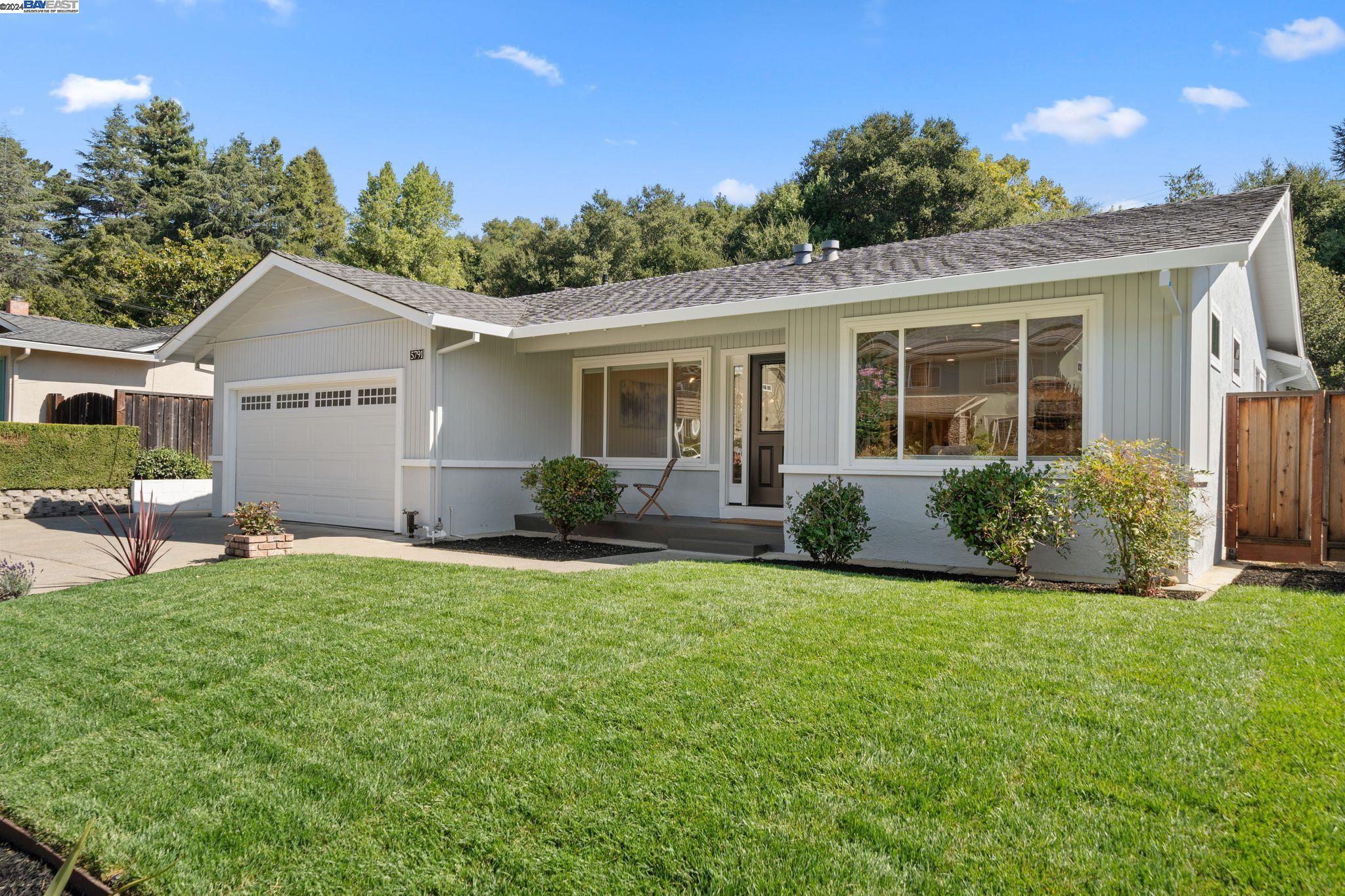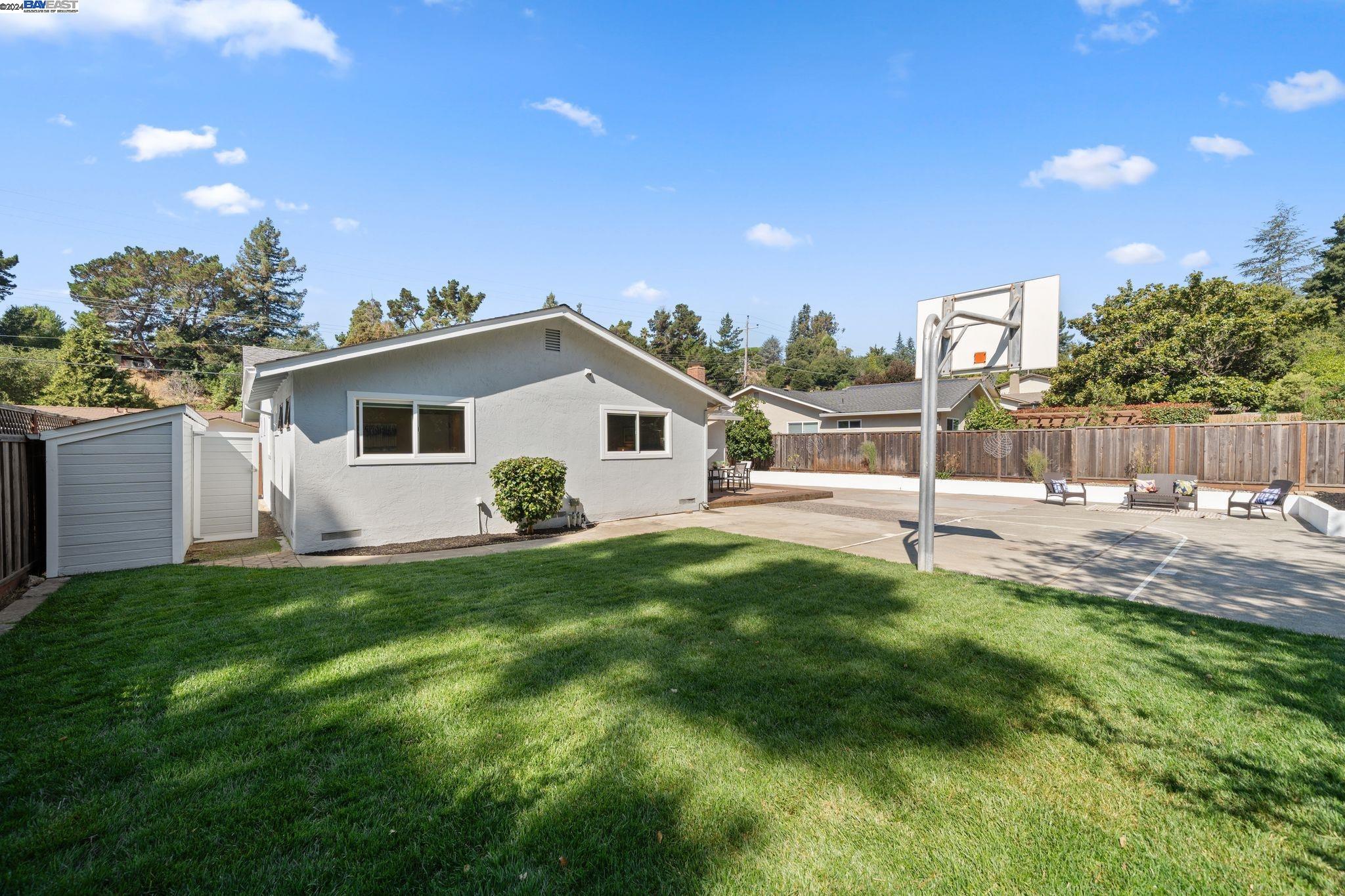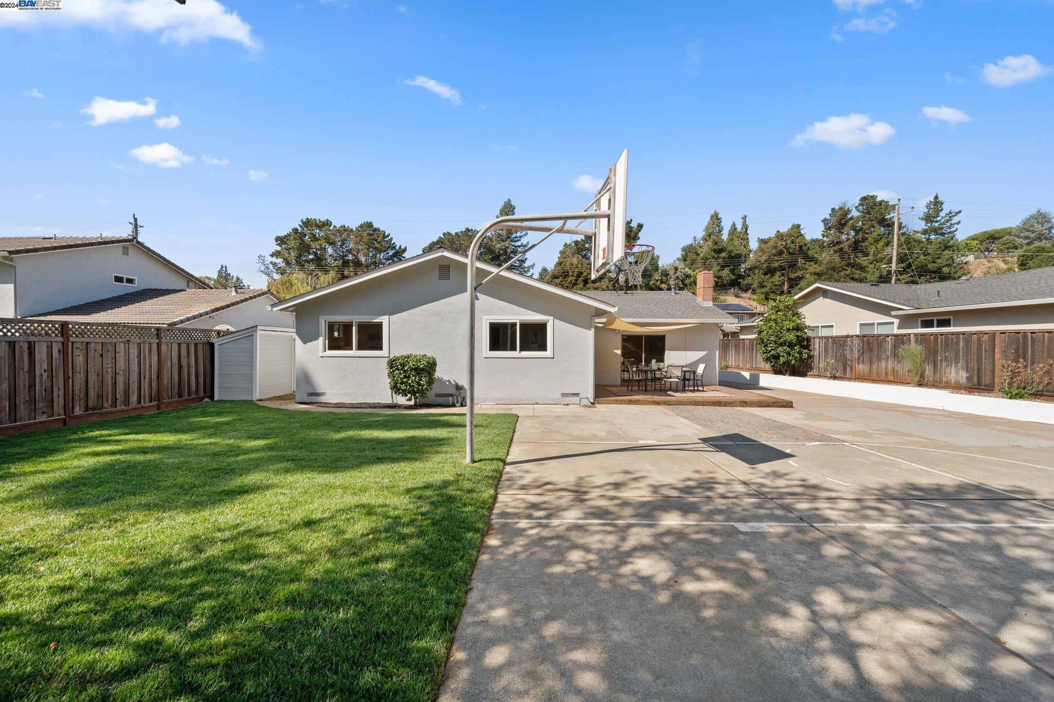 This stunning 3-bedroom, 2-bathroom home in the Greenridge neighborhood of Castro Valley seamlessly blends modern living with the tranquility of its peaceful surroundings. Upon entering, you are greeted by custom Red oak hardwood floor, with foyer inlays, that extend throughout the home. The efficient and modern open kitchen flows effortlessly into a formal dining area on one side and a cozy entertainment room on the other. The entertainment room features bar stools and is bathed in natural light, making it a perfect spot to relax. The formal living room graces the right side of the home which also leads to the bedrooms. The bathrooms, one which is ensuite, are elegantly designed with updated fixtures and stylish contemporary tile work, providing a touch of sophistication and comfort. The expansive backyard is perfect for relaxation and entertainment. It features a basketball court, a lush grass area, and ample space for hosting gatherings or enjoying quiet evenings. An additional bonus is the side area of the house, which can accommodate parking for an RV or boat. Ample storage areas with a large garden shed and garage loft. This home offers an easy commute to Silicon Valley, the South Bay, and San Francisco. It is also conveniently located near highly sought-after schools.
